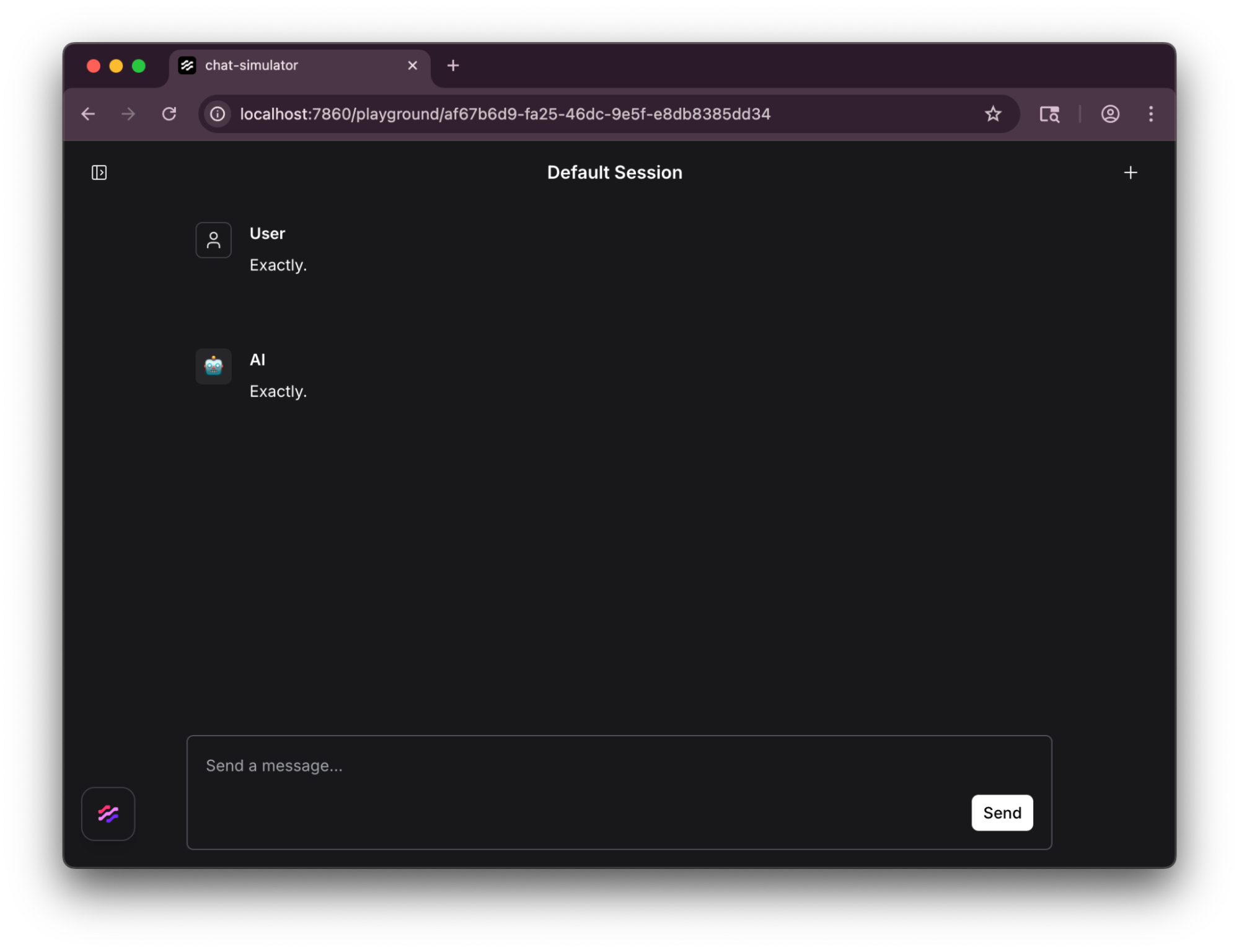 Logging in as another user, you can enjoy the very agreeable conversation experience: