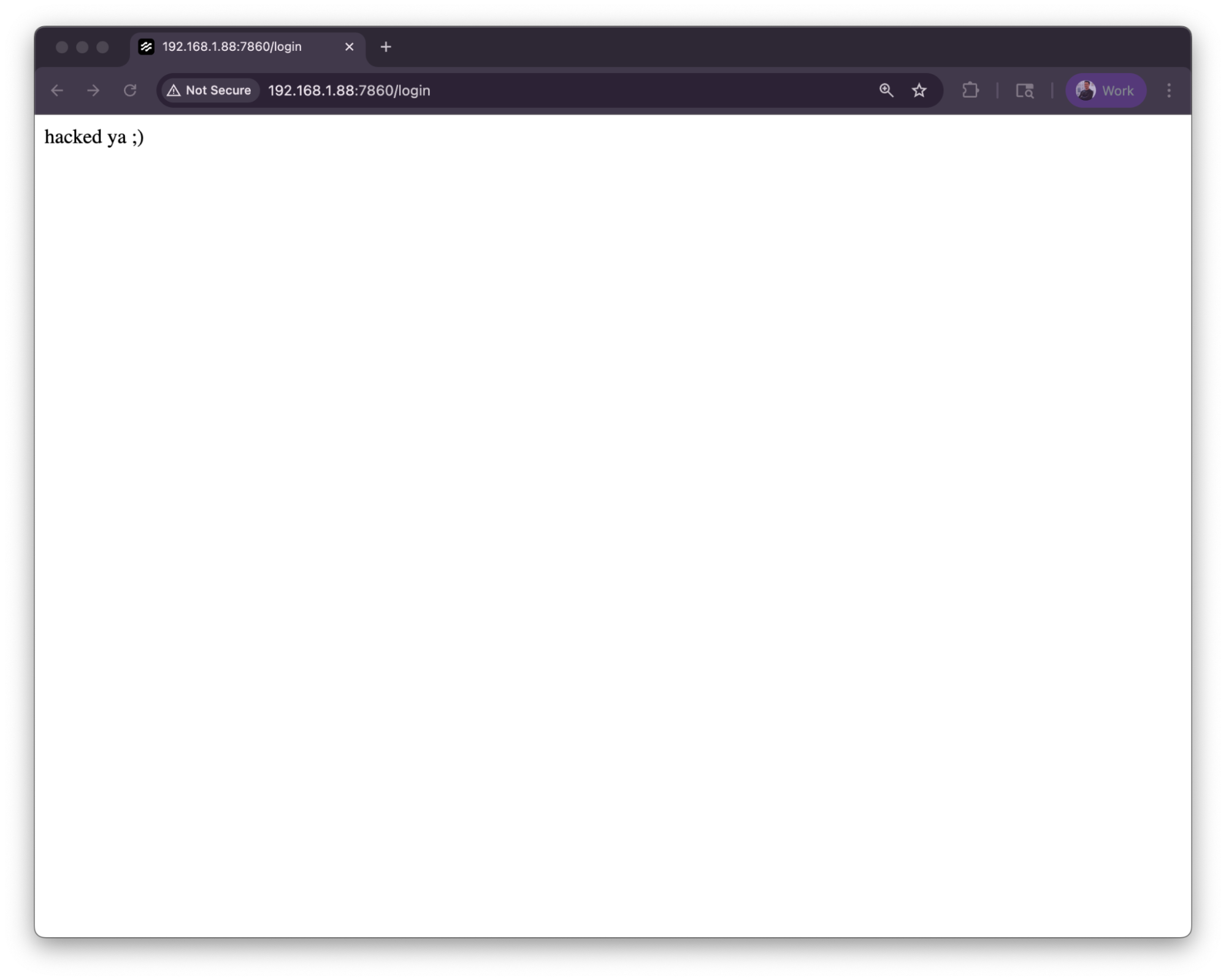 For my exploit payload, I decided to replace the frontend’s index.html with the text “hacked ya ;) ✌🏻” for demonstration purposes.